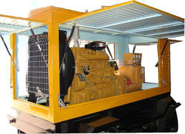 源城柴油发电机组/移动柴油发电机组设计独具创新,机动性高、重心低、制动安全、制造精良、外形美观。 源城拖车车架采用槽梁焊接成框架结构,节点选择合理、强度高、刚性好;同时装有钢板弹簧悬架结构;拖车采用高度可调节插销式牵引架,适用于各种高度牵引车;采用圆形钢管焊接直通式车轴,结构紧凑,安全可靠;车架四角设有机械式支撑装置,配备惯性行车制动、驻车制动和脱离应急制动,确保机组在各种状况下的安全;车架前端设有支撑轮,具备承受机组垂直载荷的功能的同时还具备导向功能;整车配备转向和刹车指示灯,同时装有尾灯标准插头